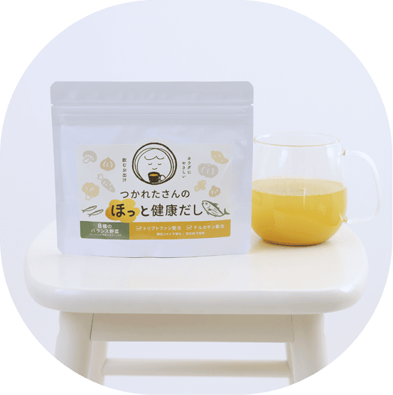「つかれたさんのほっと健康だし」は、国産かつお出汁に休息をサポートする必須アミノ酸トリプトファンと、巡りやエイジングケアを支えるポリフェノール・ケルセチンをW配合。
